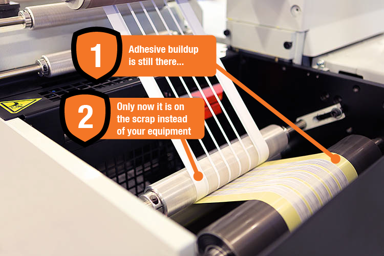 - Minimize production stoppages due to adhesive buildup – on all adhesive types